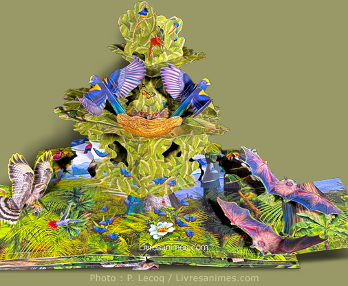 > Il n’est pas dans mes habitudes d’acheter des livres dans un grand supermarché de campagne avant Noël. Alors, quelle ne fut pas ma surprise en découvrant Forêts tropicales sur une étagère au milieu d’albums jeunesse, disons… de moindre attrait ! C’était le seul exemplaire disponible, signé de plus par l’ingénieur papier David Hawcock, bien connu de tous les fans de pop-up.