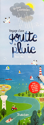 > Le lecteur découvre le cycle de l’eau en guidant la bille dans les rigoles du livre, et observe ainsi tout le voyage d’une goutte de pluie, depuis le nuage jusqu’à la mer, avant de revenir à son point de départ.