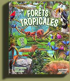 > Il n’est pas dans mes habitudes d’acheter des livres dans un grand supermarché de campagne avant Noël. Alors, quelle ne fut pas ma surprise en découvrant Forêts tropicales sur une étagère au milieu d’albums jeunesse, disons… de moindre attrait ! C’était le seul exemplaire disponible, signé de plus par l’ingénieur papier David Hawcock, bien connu de tous les fans de pop-up.